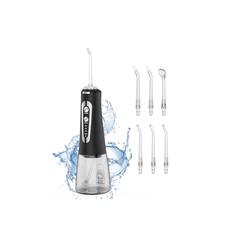 • Tiefenreinigung der Zähne – Die Munddusche ist mit einem hochwertigen Motor mit 1100 ~ 1800 Mal Wasserimpulsen pro Minute und einer um 360° drehbaren Düse ausgestattet. Die wiederaufladbare Munddusche entfernt bis zu 99,99 % der Speisereste in jeder Ecke. Geeignet für alle Gruppen, besonders für Zahnspangen.