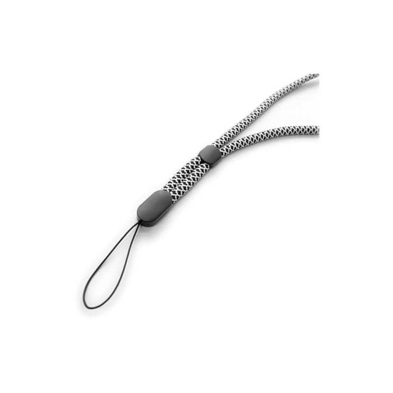 Box contents: one black and white patterned adjustable short wrist lanyard.