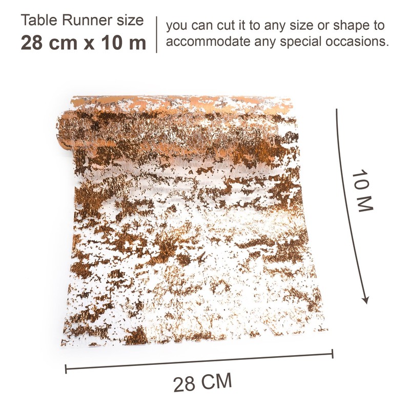 - Premium Quality: Bronze foil metallic mesh Table Runner is netted from premium metallic Bronze foil for delicate texture touch and durability.