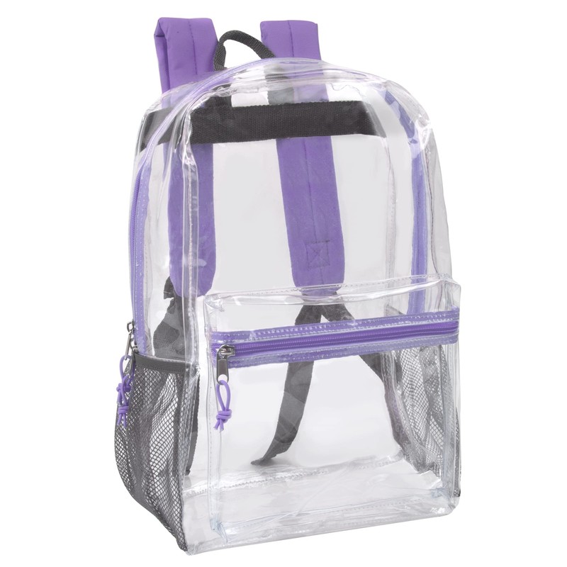 - CLEAR PURPLE BACKPACK: This durable and transparent backpack is constructed from quality PVC material, making it the ideal clear backpack for schools, security, sporting events and much more!