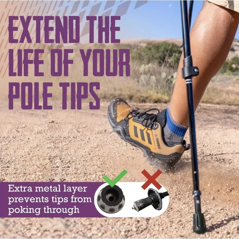 6 PIECE SET - Rubber tips wear and have a tendency to become loose and slide off, so it's always a good idea to carry extra tips especially for long hikes. With TrailBuddy's 6-piece pack, you are covered!