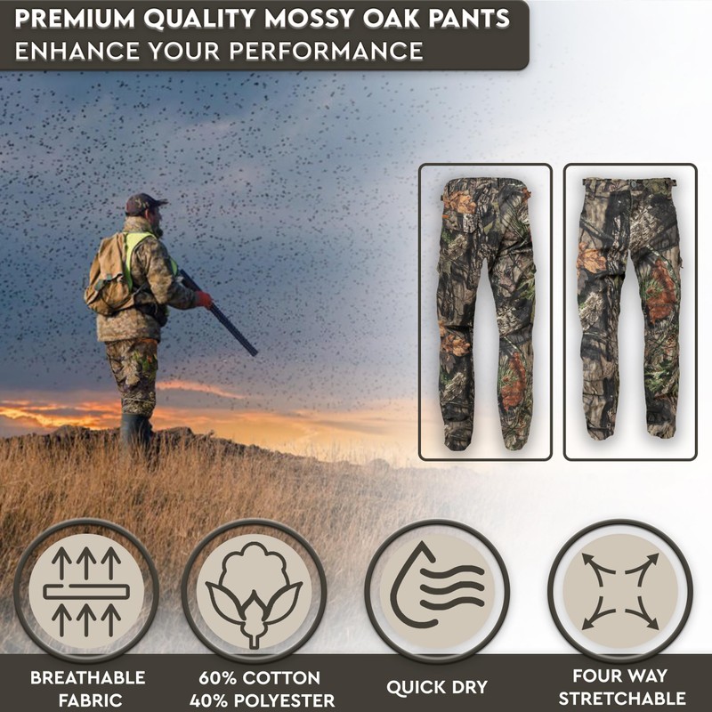 - MOSSY OAK CAMO BRAND - Mossy Oak is a family of patterns utilizing the three core elements of the natural world -earth, water, and wind. Fused together into realistic images that actively disrupt the human outline at any distance, and in any light spectrum.