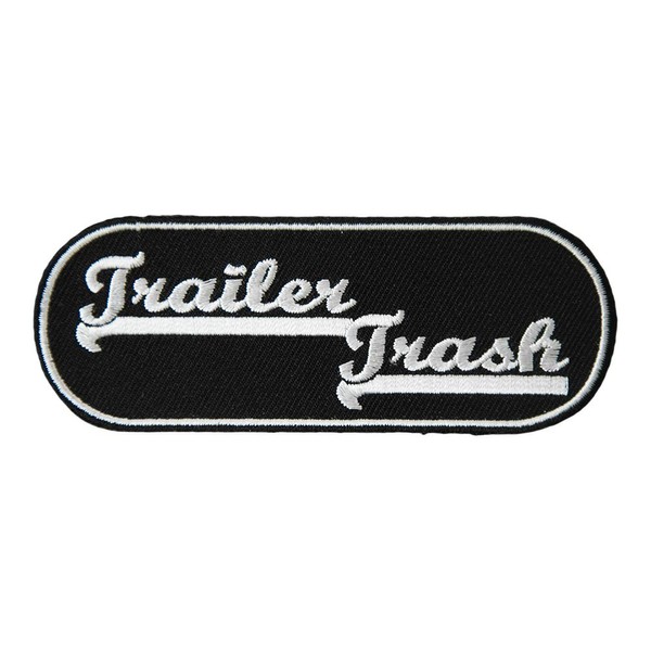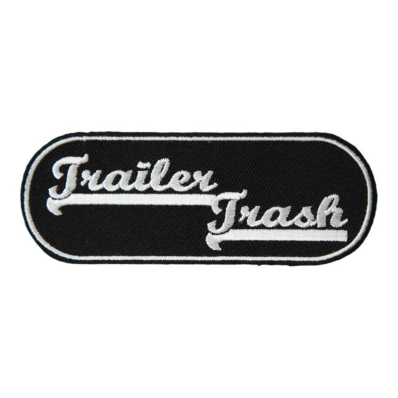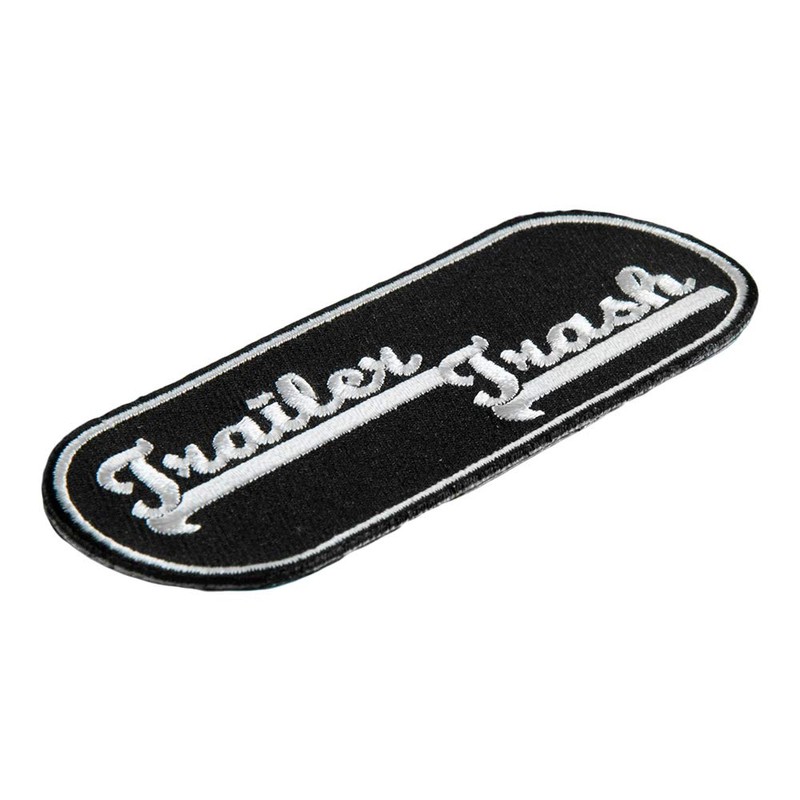 Trailer Trash Black & White Oval Patch, Embroidered Biker Patches