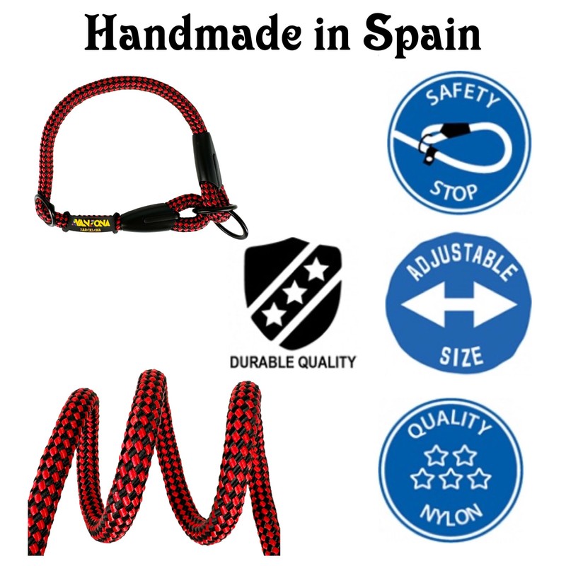 Training Collar for Dogs – Anti-Pull, Adjustable, Made Polyester Rope, Suitable for Small, Medium and Large Dogs, Made in Spain. Red&Black. XXL(≤80CM).