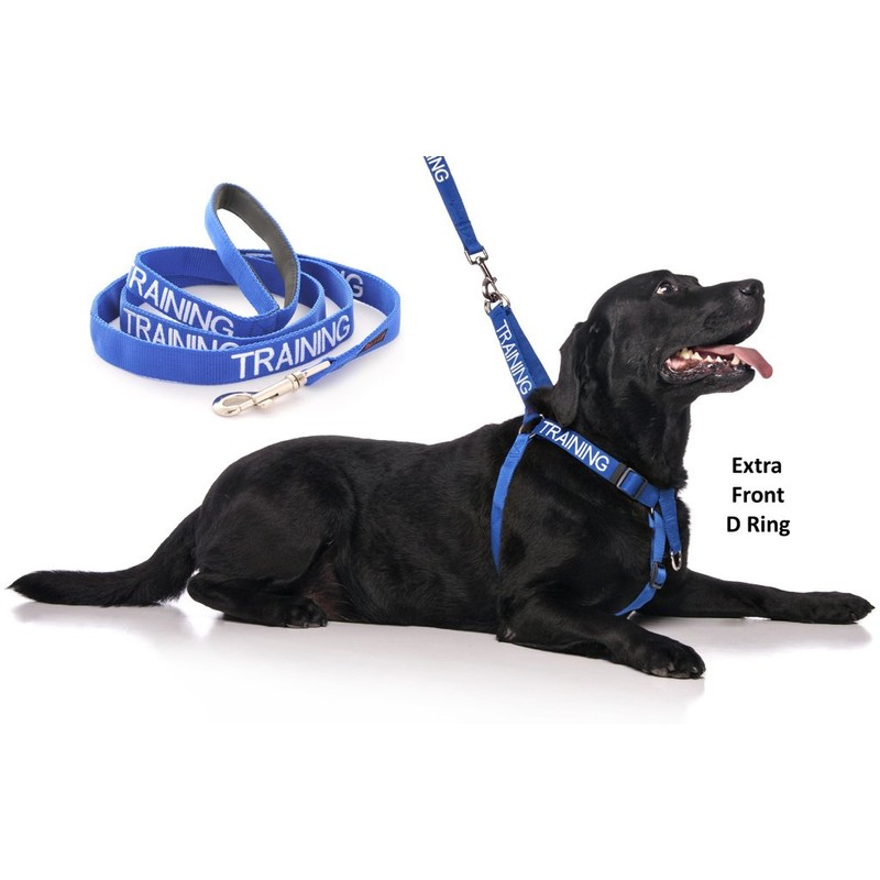 TRAINING (Dog In Training/Do Not Disturb) Blue Colour Coded L-XL Non-Pull Dog Harness and 60cm 1.2m 1.8m Luxury Neoprene Padded Handle Lead Sets PREVENTS Accidents By Warning Others Of Your Dog In Advance (Harness & 1.8m)