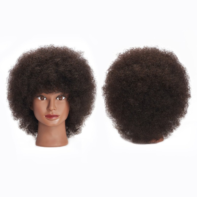 Traininghead 10'' Afro Mannequin Head With 100% Human Hair Training Head Manikin Cosmetology Doll Head For Hairdresser With Clamp Stand (10 inches)