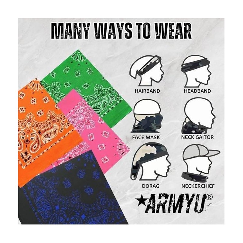 - PEFECT SIZE: At 22" x 22", these bandannas are large enough to use as a head scarf or head wrap, while still being small enough to easily fit in your pocket.