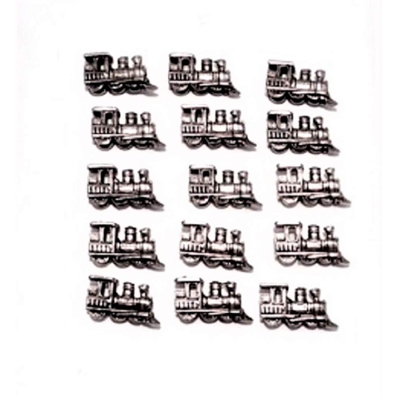 **NEW ITEM** TRAINS" , 15PC SET PUSHPINS CHOO CHOO!! ADD A LITTLE FUN TO YOUR HOME OR OFFICE BULLETIN BOARD WITH THESE CHUGGING AROUND, HOLDING NOTES AND PAPERS .. WORKS GREAT FOR MARKING TRAVEL MAPS AS WELL! MAKES A GREAT GIFT FOR ANYONE WHO LIKE TO TRAVEL NEAR AND FAR ! CAN ALSO BE HAMMERED INTO SOFT WOOD FOR HOME DECORATING MADE IN THE USA OF LEAD FREE METAL, THESE ARE ELECTROPLATED RICH ANTIQUE SILVER SHIPS IN A REUSABLE CONTAINER FREE SHIPPING USUALLY SHIPS THE SAME DAY BUY ANY 3 SET OF PUSHPINS FROM NORMA JEAN DESIGNS AND WE WILL UPGRADE TO PRIORITY SHIPPING AT NO ADDITIONAL COST TO YOU