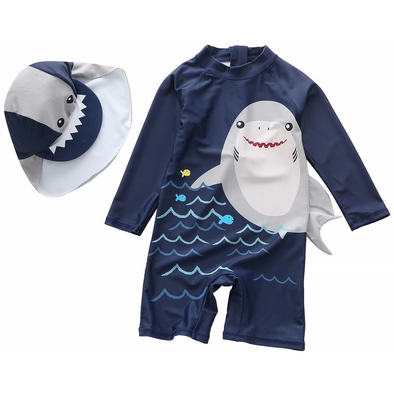 - Diseño: traje de baño de una pieza para niños pequeños con sombrero, traje de baño de dinosaurio/tiburón, el mejor regalo para tu hijo en verano.