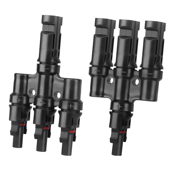 - WHAT YOU NEED: Your solar panels are complete with our premium T-branch connectors! Made from high quality materials, these 1 male to 3 females (M/FFF) and 1 female to 3 males (F/MMM) are ideal for all solar panels as they can withstand extreme weather conditions and high humidity