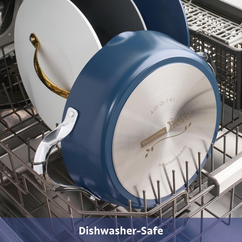 Tramontina Fiora 4.25-Quart Multipurpose Ceramic Non Stick Cooking Pan with Lid, Blue