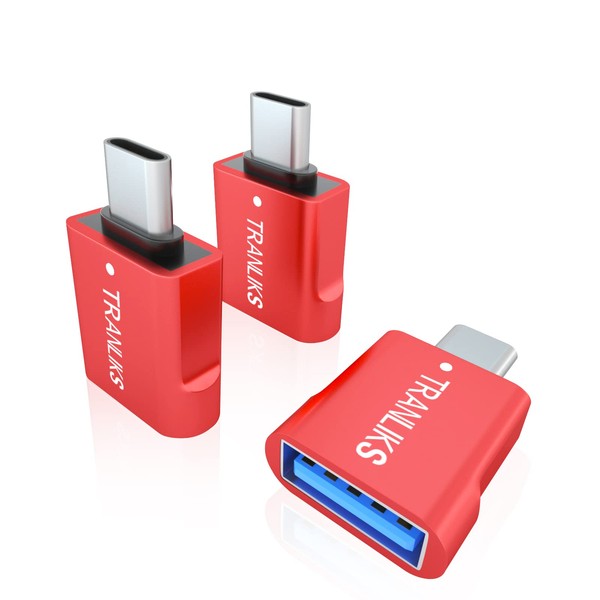 TRANLIKS USB to USB C Adapter, OTG Adapter from USB 3.0 Female to USB C Male for Fast Charging and High-Speed Data Transfer - Pack of 3, Red