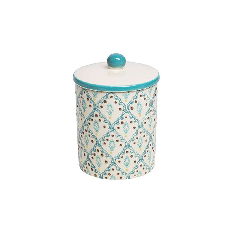 Tranquillo Storage Tin with Lid Hand Printed Ceramic Oriental 8 x 8 x 12 cm