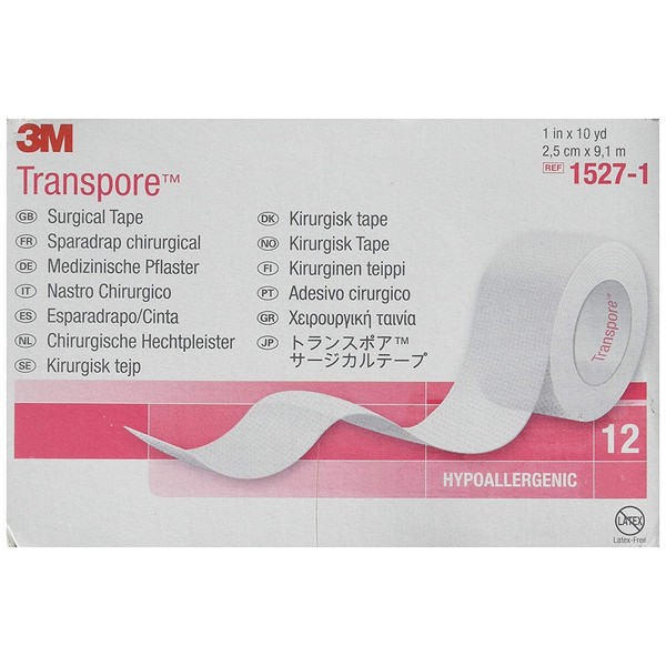 Trans.pore 3M Transpore Surgical Tape, 1" x 10 yds, 12 Count (Pack of 1)