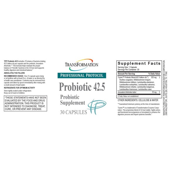 - HEALTH BENEFITS: Transformation’s Probiotic 42.5 is a probiotic supplement designed to help promote gastrointestinal system health, assist with regularity, and support a healthy immune system.*