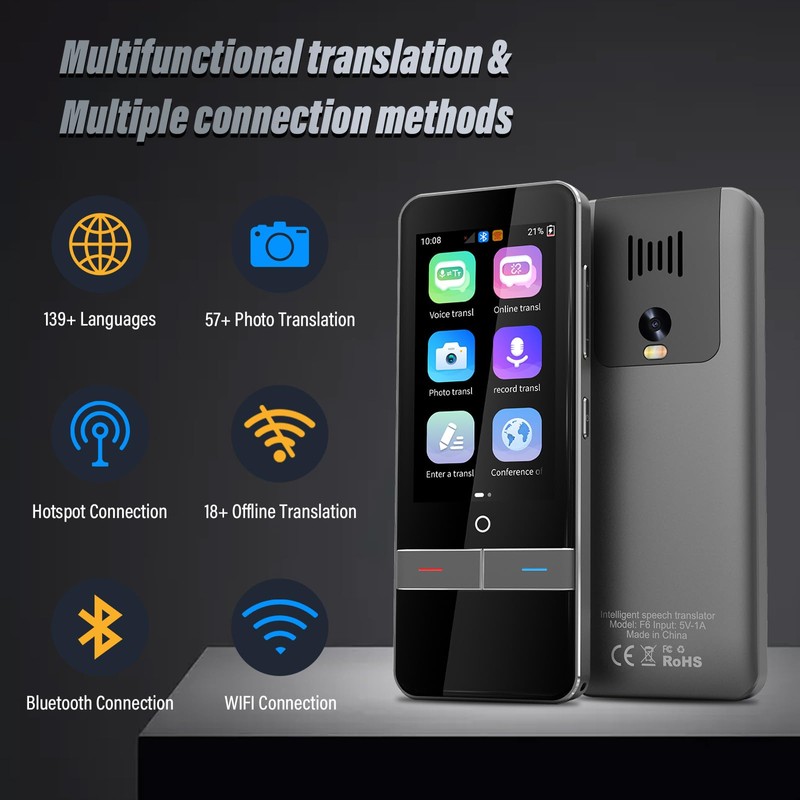 - 【MULTI-FUNCTIONAL CONNECTIVITY】: The language translator can perform real-time translations by connecting to Wi-Fi, hotspots, or Bluetooth, eliminating the need for SIM cards or additional apps. Instant language translator device also features advanced noise-reduction capabilities and a unique BOX cavity speaker, ensuring accurate real-time speech recognition even in noisy environments.