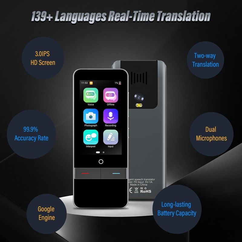 - 【ULTRA-FAST TRANSLATION】: With a response time of less than 0.5 seconds, this language translator enables smooth communication across multiple languages. It boasts near-perfect accuracy (99%), even with complex sentences. Furthermore, this language translator device can record and translate audio in English, Mandarin, and Cantonese, and it offers the option to export the translated text to other devices.