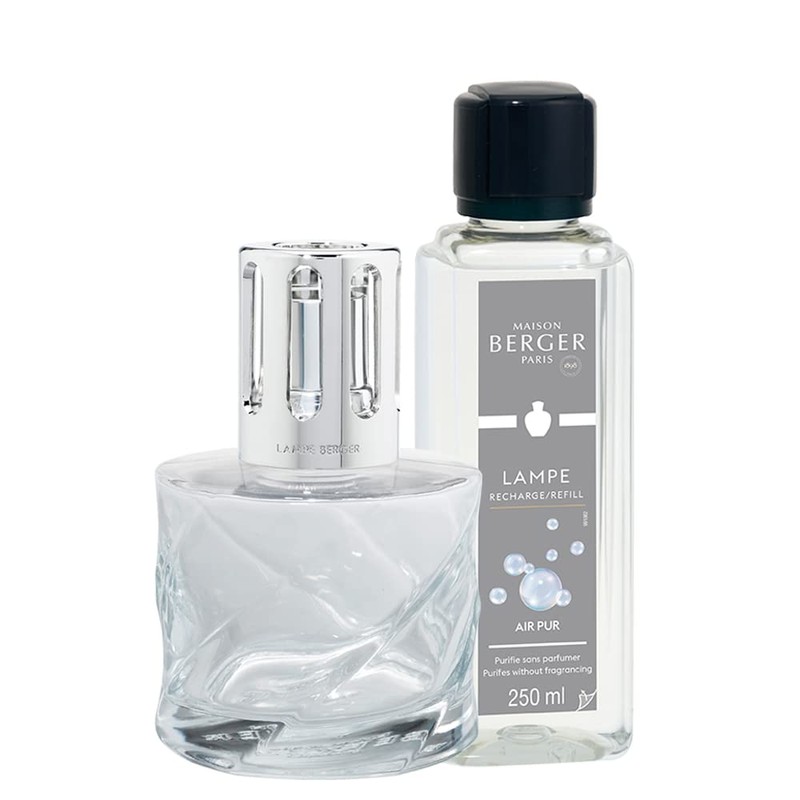 - Contains - 1 Lampe Berger Spiral Transparent + 1 Air Pur 250 ml Catalyst Lamp Refill Pack + 1 Silver Straight Holder + 1 Air Pur 3P Case Burner + 1 Extinguisher + 1 Transparent Funnel