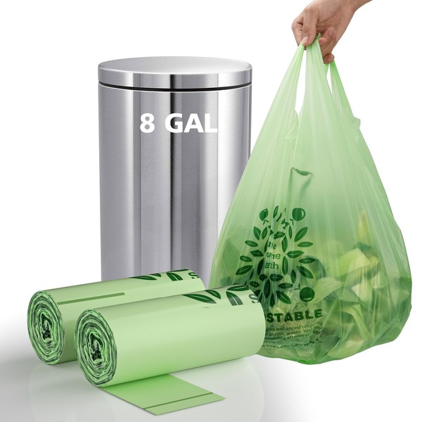 - 【Plastic & Odor Reduction, Living in Harmony with Nature】Degradable trash bags 8 gallon made with corn starch and long-lasting materials, these 8 gallon trash bags unscented break down naturally to reduce plastic waste. Family and pet-friendly, eco-conscious choice with odor control. Soft green color fits any space while showing your eco commitment