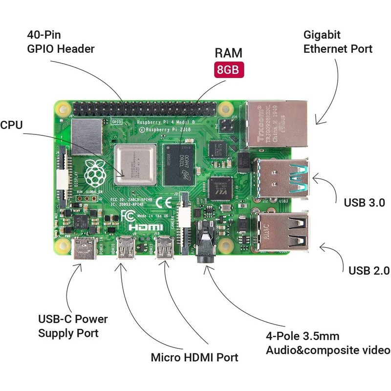 - Raspberry Pi 4B (8GB RAM) is an upgraded processor that provides the same power as an entry-level PC with improved performance. The I/O side supports new 4K dual display output, and the video output terminal has been changed to 2 Type-D (Micro HDMI). Graphics support OpenGL ES 3.x with VideoCore VI operating up to 500MHz Additionally, USB 3.0 and Bluetooth 5.0 compatible, Gigabit Ethernet is now faster than the previous model