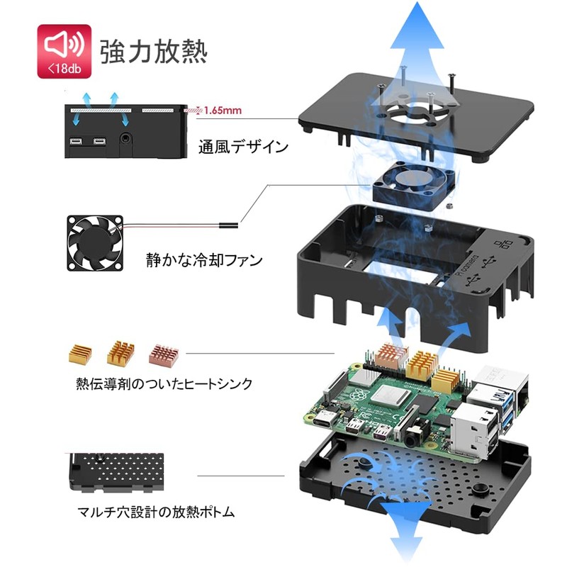 - The TRASKIT set uses a black protective case made of high quality ABS material, making it easy to install, and the structure is tightly close, giving you a different experience. The design of the front cover of the case is streamlined and the front cover is easy to remove, which is convenient for you to experiment with GPIO lead wires. The micro-skimmer design is beneficial for pulling lead wires and heat dissipation of the body. The fan adopts a silent bearing design, and the 5V/0.2A and 3.3V/0.1A can be selected, and the maximum rotation speed can reach 12,000 rpm. Heatsink set and cooling fan help increase computing efficiency. It performs better than traditional heatsinks so you can use it safely and quietly