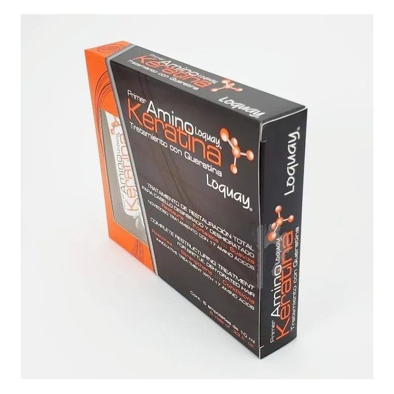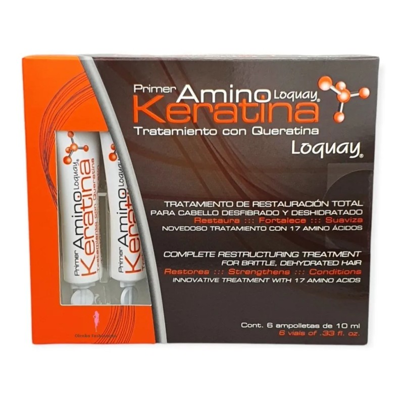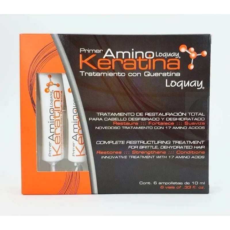 Tratamiento Loquay Restauración Primer Amino Keratina, 6 ampolletas x 10ml. Repara, hidrata y fortalece el cabello dañado con keratina y aminoácidos. Resultados visibles al instante.