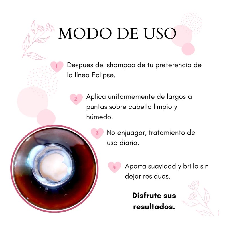 Su fórmula avanzada actúa para restaurar la fibra capilar dañada, fortalecer el cabello quebradizo y sellar las puntas abiertas, mientras le devuelve su hidratación natural y una suavidad incomparable. Experimenta un cabello más fuerte, elástico y manejable, con un brillo espectacular que refleja su salud interior. Dile adiós a la resequedad y al cabello sin vida, y da la bienvenida a una melena radiante, sedosa y profundamente reparada con el Tratamiento en Crema Argán Eclipse.