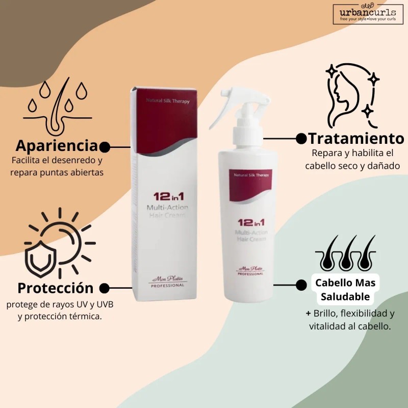 Tratamiento capilar Mon Platin 12 en 1 de 250 ml: repara, hidrata, desenreda y protege el cabello en un solo paso. Ideal para todo tipo de cabello.