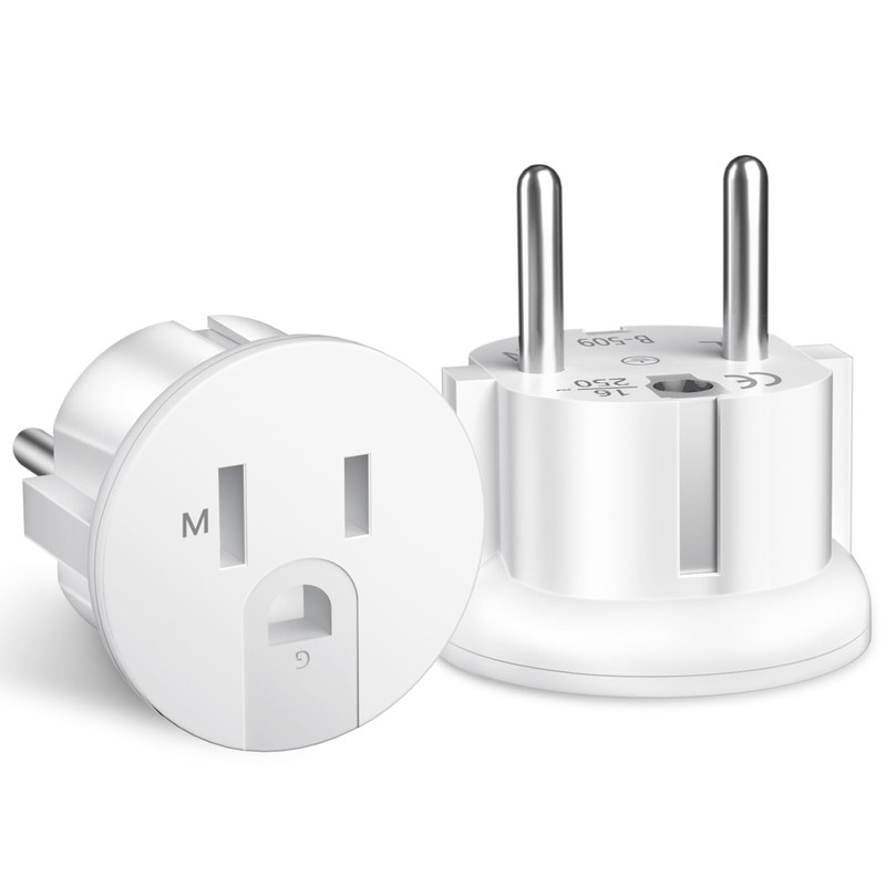 - You will receive: The package contains two American to European plug adapters, 2P+E grounded type, standard pin diameter of Φ 4.00 mm, and the European adapter can convert 2-pin or 3-pin American plugs into European Schuko plugs.