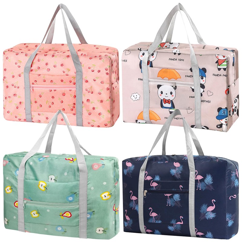 Travel Bag Carry on Duffel Bag Foldable Luggage Spirit Airlines Personal Item Bag Sports Gym Bags Weekender Overnight Bag Nylon Travel Duffel for Women (4PCS), 4 Patterns, Foldable Travel Bag