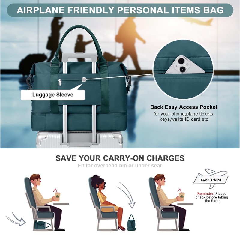 - Airplane Friendly Personal Item Bag: The perfect carry-on compliant bag for personal item for airline travel, can fit under an airplane seat. Use it as a duffle bag, travel bag, weekender bag, overnight bag, carry on bag, sports gym bag