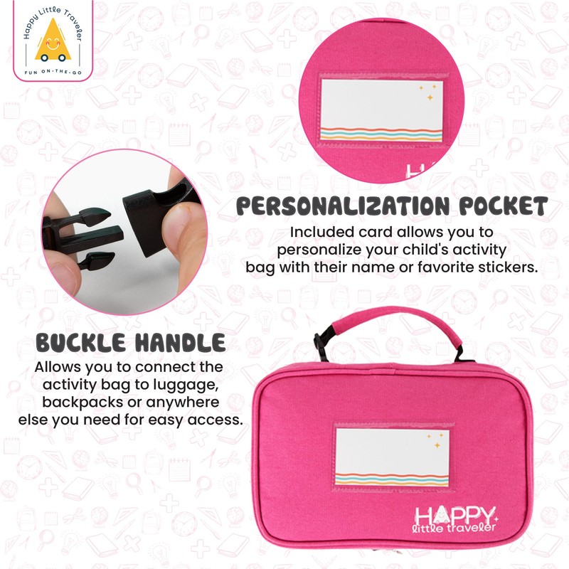 Travel Essentials for Kids – All-in-One Activity Kit for Travel, Road Trip Activities for Kids - Hanging Bag, includes Toys and Activities for Airplanes - Boys & Girls, 4-6 Years (Pink)