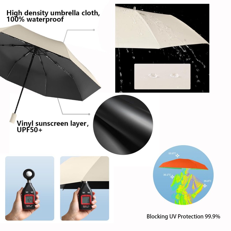 - ☂Double Protection:Featuring a Teflon coated canopy, our umbrella repels water effectively, allowing for a quick dry experience and minimizing the hassle of storage after use.With our uv protection umbrella's Teflon coating,Effectively block 99 UV parasol outdoor sun. it shields you from harmful rays during both sunny and overcast days. No matter the weather, be prepared, add it to your travel essentials list.