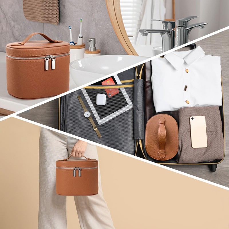 - 【Premium Material】This women's cosmetic bag is made of high-quality PU leather, soft to the touch, waterproof and durable. Vintage design will bring you countless compliments. Guguden portable travel cosmetic bag is a great choice and ideal companion for you