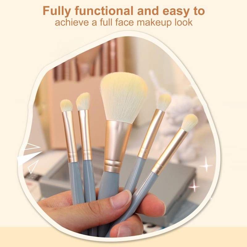 - MULTIFUNCTIONAL 5-PIECE SET:Our mini makeup brush set includes five essential brushes-detail brush,nose shadow brush,loose powder brush,eyeshadow brush,smudge brush,fully functional, can meet your daily makeup basic needs,easy to stick the powder smudge evenly.Makeup brushes kit is the perfect basic makeup tool set to take with you when you go out or travel.