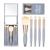 Travel Makeup Brush Set,Mini Cosmetic Brushes Kit,Small Make up Brushes Set with Case and Mirror,Travel Size Makeup Brushes Set,Cosmetic Tools for Women,Blue-Text