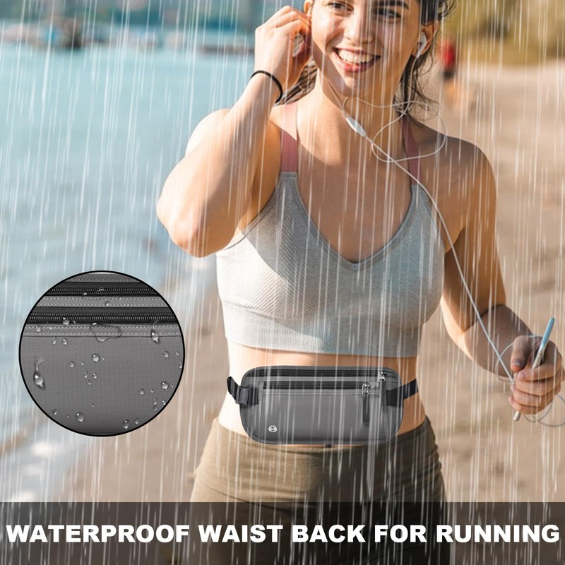Travel Money Belt Secure RFID Blocking Money Belts for Travel Hidden Men Waterproof Undercover Travel Waist Bag Anti Theft Travel Wallet for Passport, Phone, Credit Cards & Cash, Grey