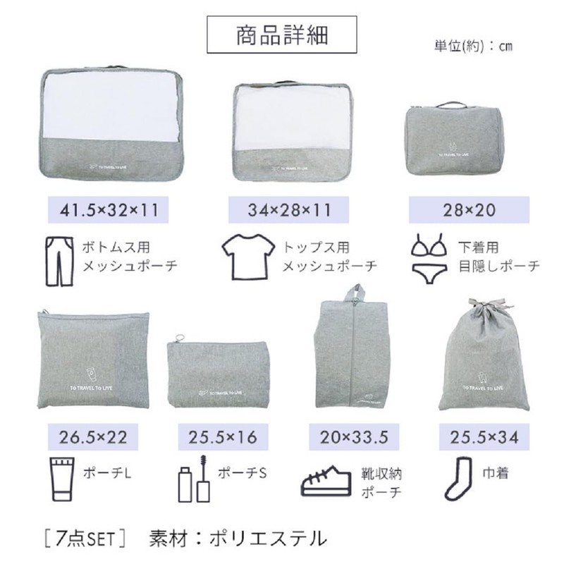 - Set Includes: Mesh Pouch L for Bottoms, Medium Mesh Pouch for Tops, Blindfold Pouch for Underwear, Pouch L / S, Shoe Storage Pouch, Drawstring