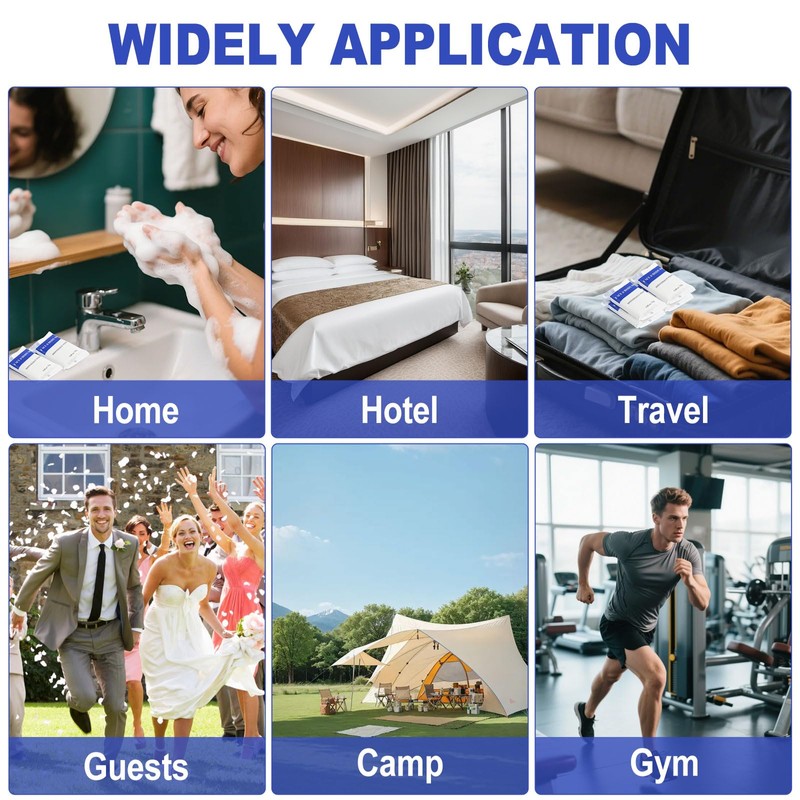 - Natural and Nourishing Ingredients:Our disposable soaps are made from natural ingredients and can be used by all skin types, they gently cleanse the skin and are suitable for use on the face, hands and body