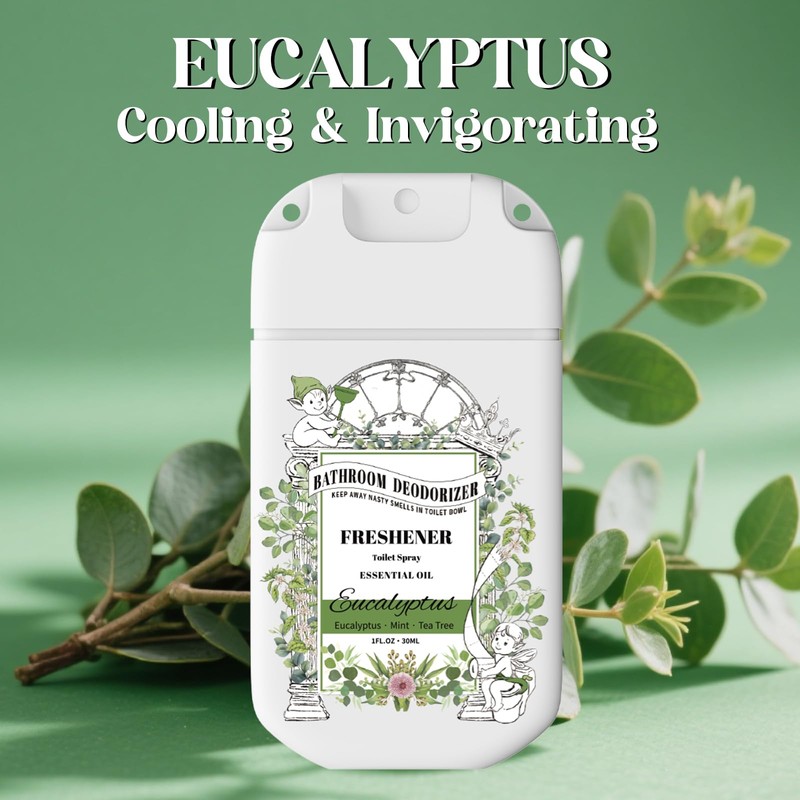 Travel Size Toilet Spray, Air Freshener Spray for Bathroom Deodorizer, Travel Essentials Variety with Removable Hook - Lemon Lavender Eucalyptus Scent