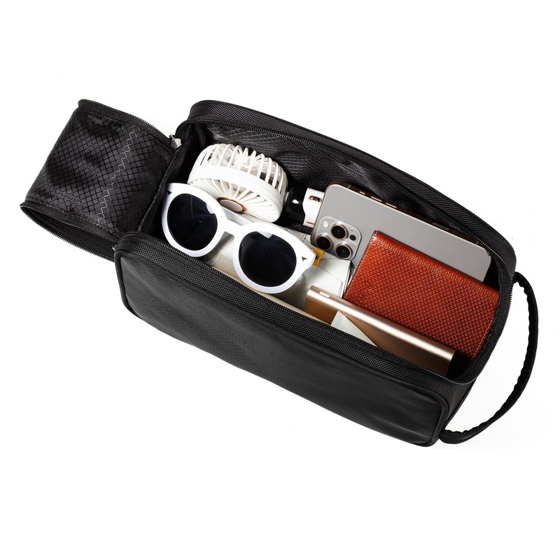 - Quality material: The toiletry travel bag is made of quality nylon material that has no unpleasant smell. The sturdy and wearable polyester material makes the bag itself very well-constructed to keep the shape and protect your toiletries from splashed water