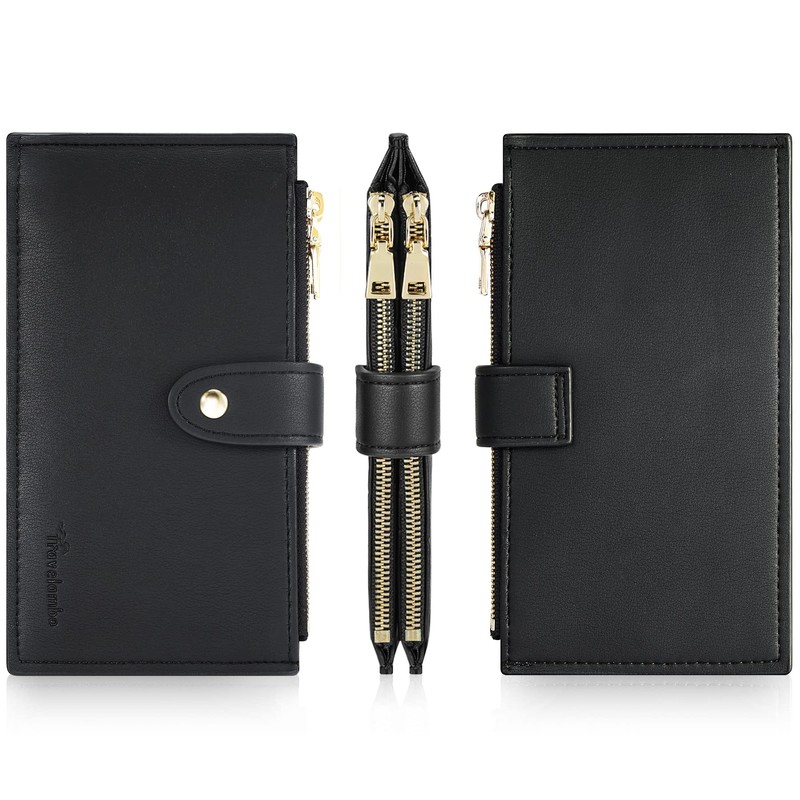 Travelambo Womens Walllet RFID Blocking Bifold Multi Card Case Wallet with Zipper Pocket Genuine Leather (Black)