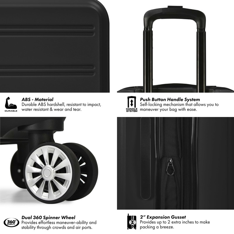 - Expandable Gusset: Allowing for additional 2 inches of packing space for travel necessities and souvenirs