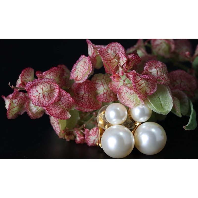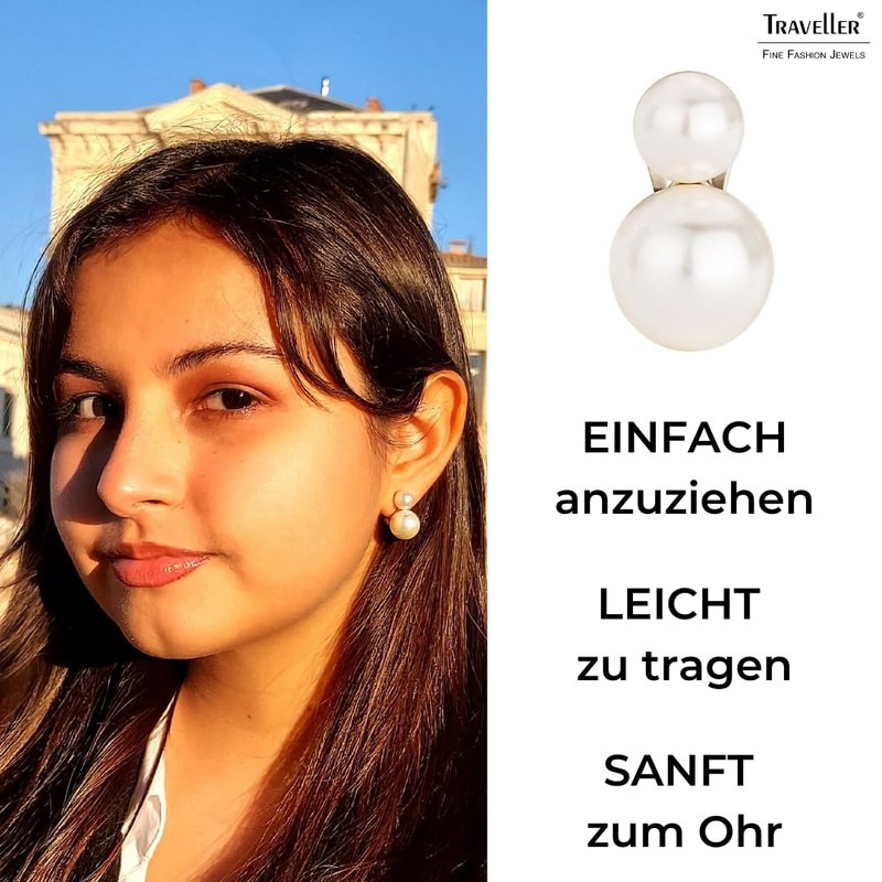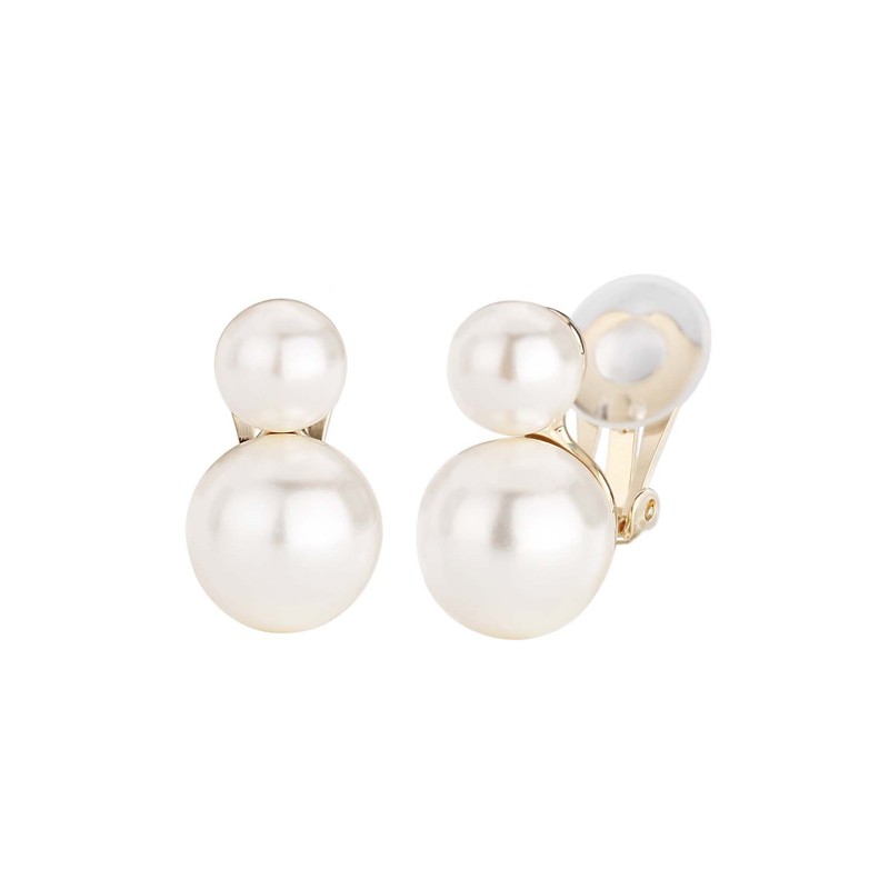 Traveller Women's Double Pearl Clip On Earrings, Titanium, Pearl