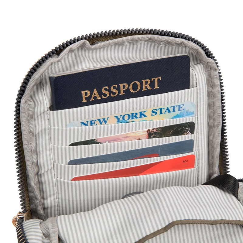 - Locking compartment has rfid protected passport and card slots, a wall pocket, tethered key clip with led light, and room to spare