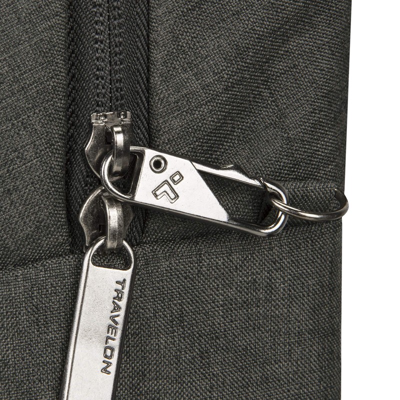 Navigate the city with this exceptional commuter and travel backpack. The Anti-Theft Urban Backpack combines clean, modern design, 5-point Anti-Theft security system and thoughtful organization for all your tech. Constructed from durable polyester fabric with gun metal finish hardware, these bags will hold up to daily wear and protect your essential gear. Stop watching your bag and look up to see the world in front of you. Our built-in 5-Point Anti-Theft security system will protect your valuables from pickpockets and thieves. The Anti-Theft Urban Backpack includes a slash-resistant mesh barrier in all 4 sides and bottom body panels; slash-resistant and lock-down strap; locking compartments; and RFID blocking organizer. Pack your bag with peace of mind, when you own the Travelon Anti-Theft bag.