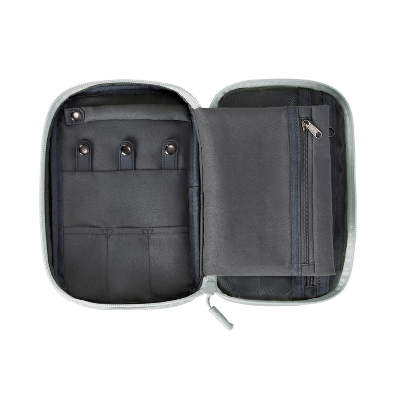 • SECURE JEWELRY WITH NO TANGLES. The zippered jewelry compartment has 3 necklace holders and slip pockets; mesh pockets for earrings; a gusseted zippered slip pocket for bracelets and brooches; and soft-touch non-scratch surface protects your valuables.