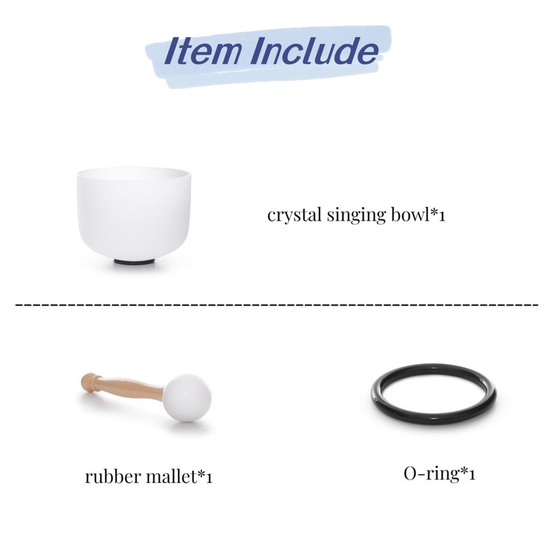 - TRAYAYA crystal singing bowl include 1 piece of 528 hz C note Root chakra crystal singing bowl 8 inch + 1 piece of Moderately soft and hard rubber mallet + 1 piece of 8.6mm thickness silicone O-ring which can keep the crystal singing bowls most stable