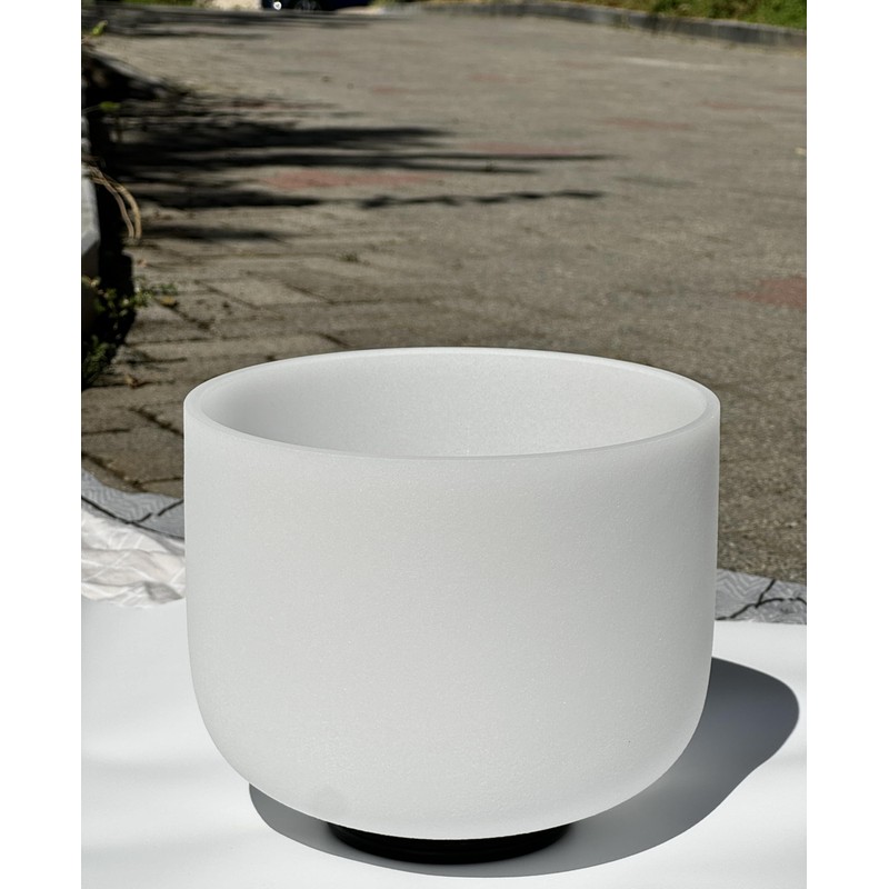 TRAYAYA 528hz Solfeggio Frequency C Note Root Chakra Frosted Quartz Crystal Singing Bowl 8 Inch