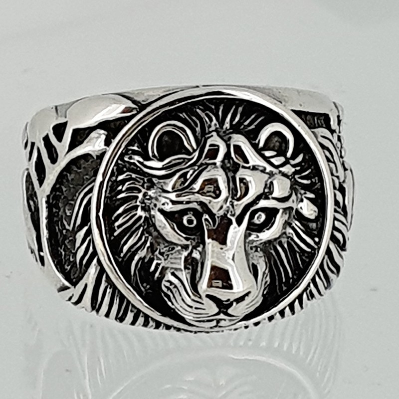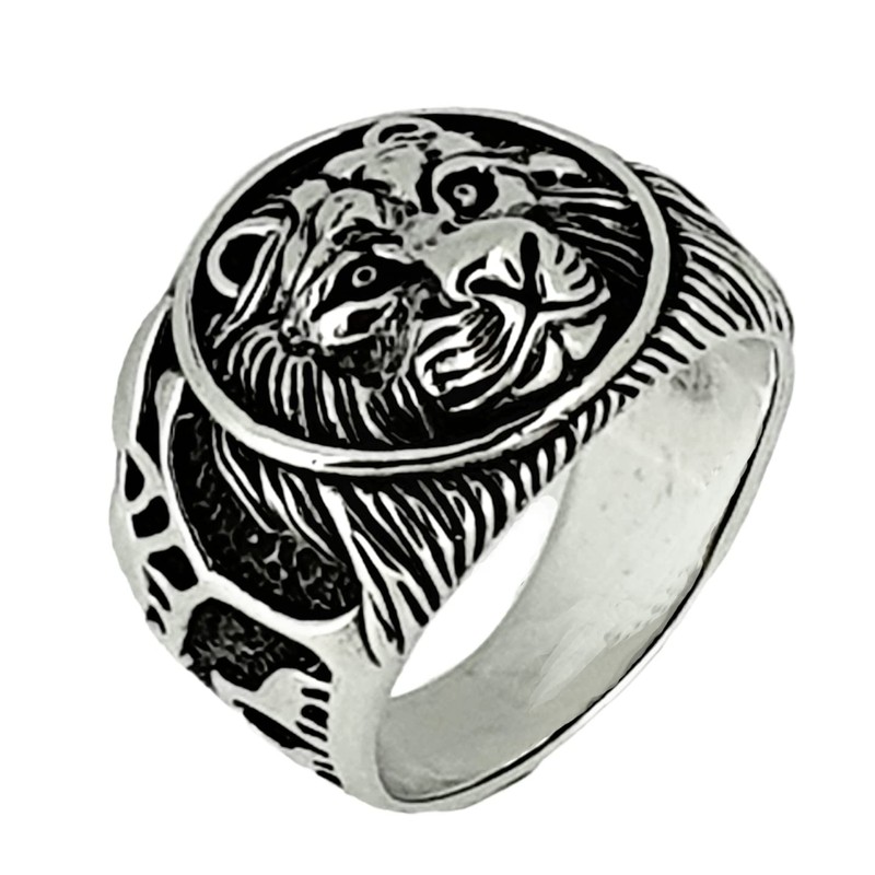 - Chunky 925 sterling silver finger ring for men lion design ring